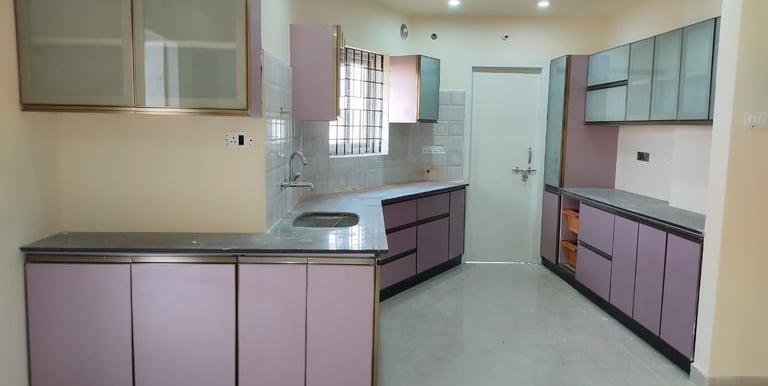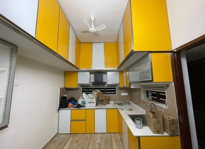 A modular kitchen design example involves a functional layout (like L-shaped or Straight), sleek finishes , smart storage tandem drawer,bottle pullouts, integrated appliances built in oven, durable countertops, and optimized lighting for a modern, efficient cooking space with pre-fabricated, customizable units for easy use and upkeep.